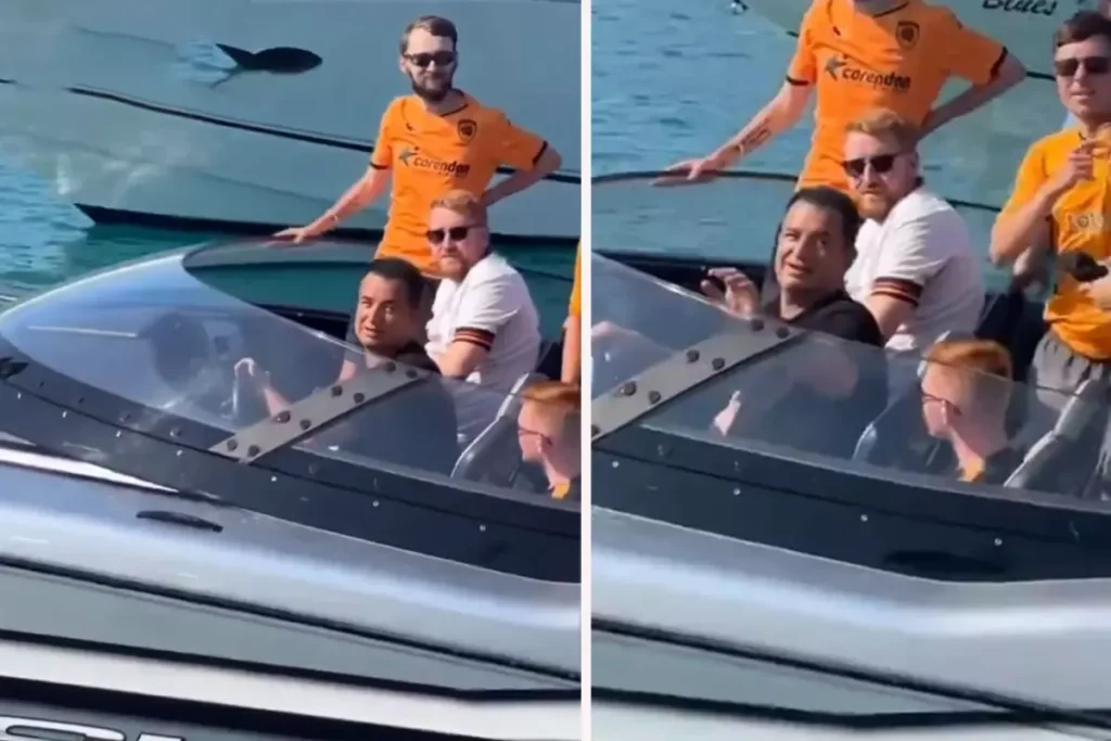 Ünlü televizyoncu ve Hull City Başkanı Acun Ilıcalı, Çeşme’de teknede arkadaşlarıyla eğlenirken, bir hayranının ilginç temennisiyle karşılaştı. Cep telefonuyla o anları kaydeden hayran, “Yolun Recep Tayyip Erdoğan gibi olsun” diyerek Ilıcalı’yı selamladı.