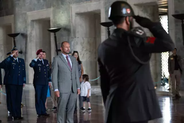 Beraberindeki heyetle birlikte Aslanlı Yol’dan yürüyen Francken, mozoleye çelenk bıraktıktan sonra diz çökerek saygısını sundu. Ardından hatıra fotoğrafı çektiren bakan, Anıtkabir Özel Defteri’ni de imzaladı.