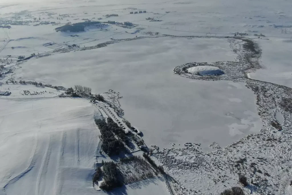 Zengin kuş çeşitliliğiyle bilinen göl, donmuş yüzeyi ve çevresindeki beyaz örtüyle dikkat çekti. Kent merkezine yaklaşık 41 kilometre, Hafik ilçe merkezine ise yalnızca 2 kilometre uzaklıkta bulunan göl, dron ile havadan görüntülendi.