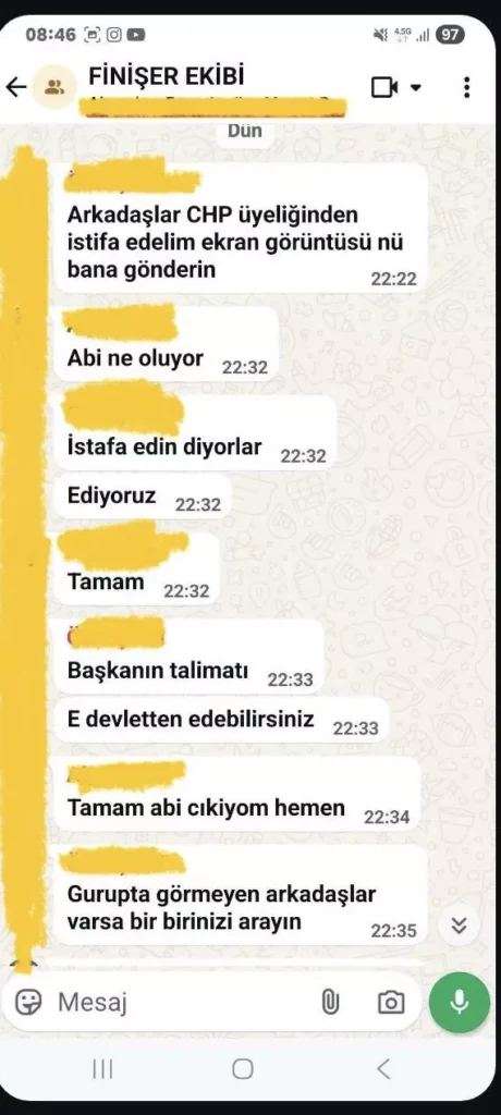 “Arkadaşlar CHP üyeliğinden istifa edelim. Ekran görüntüsünü bana gönderin. Başkanın talimatı…”