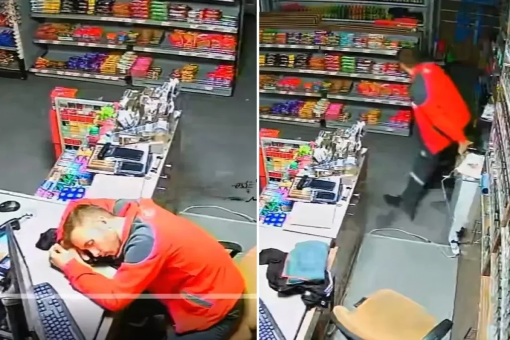 Bir akaryakıt istasyonunda gece vardiyasında görevli olan çalışan, yoğun bir günün ardından yorgunluğa dayanamayarak kasada uyuyakaldı. Güvenlik kamerasına yansıyan görüntülerde çalışanın başını öne eğip kısa bir süreliğine uyuduğu, ardından aniden uyanarak ayağa kalktığı görülüyor.