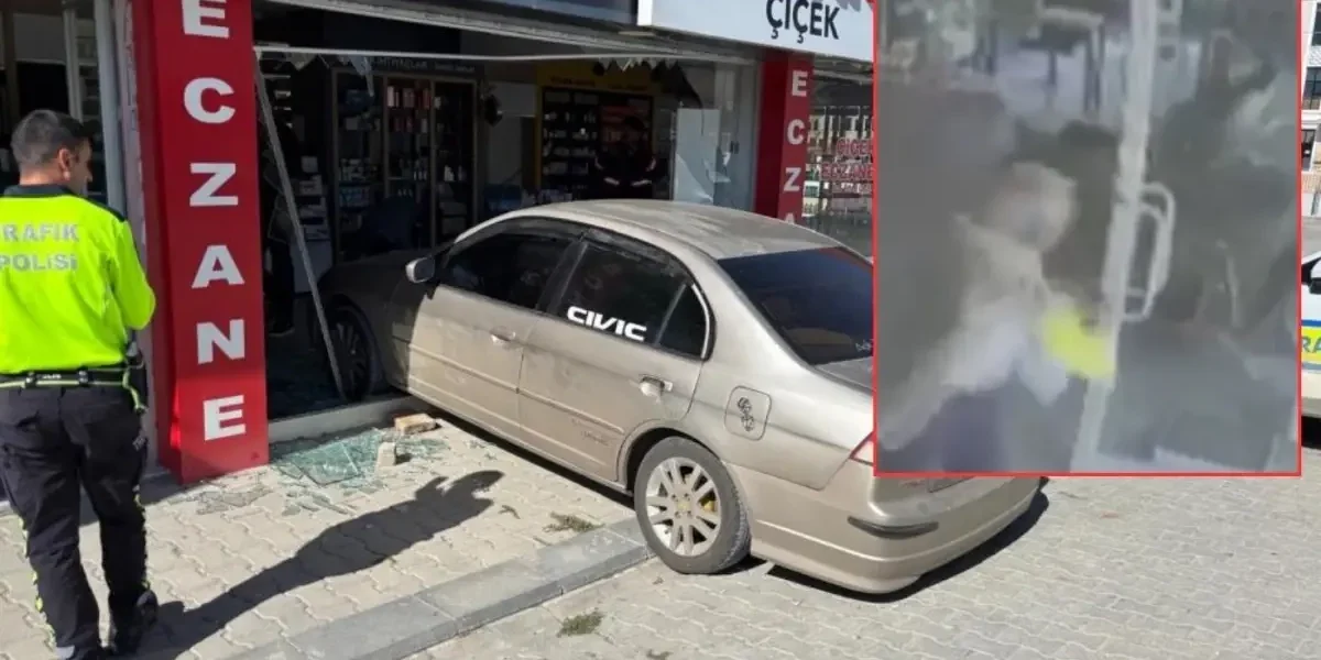 Otomobil Eczaneye Girdi: Şans Eseri Kimse Yaralanmadı