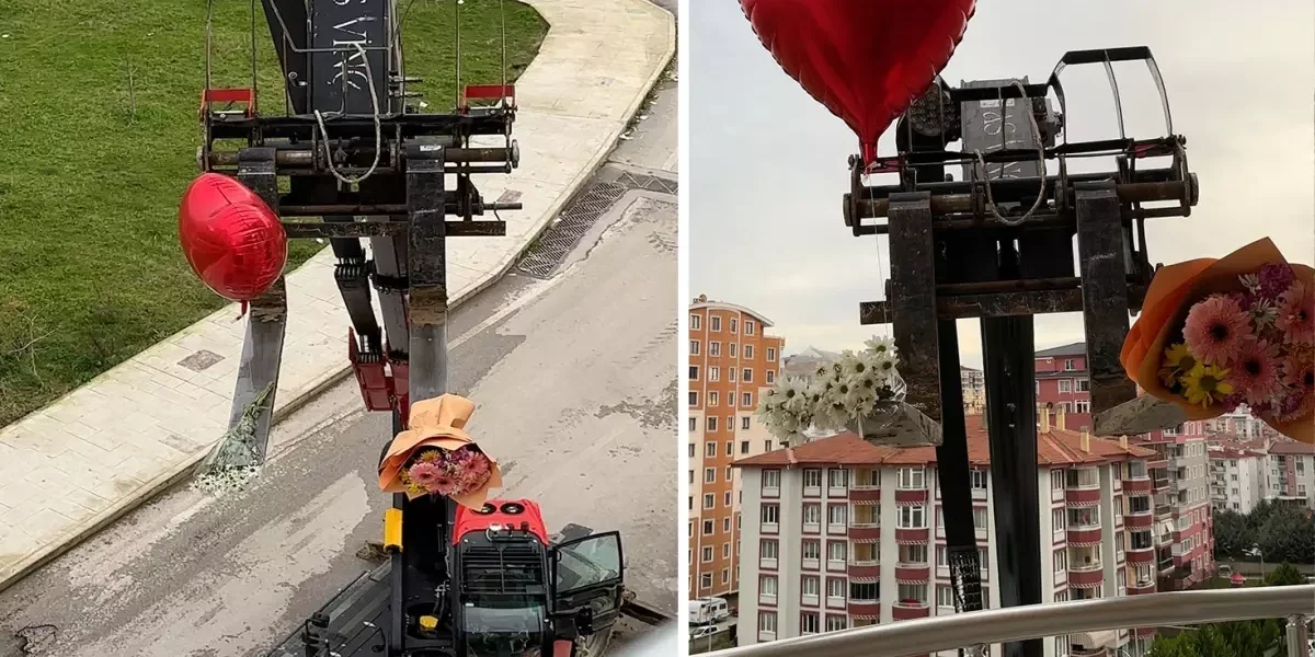 14 Şubat’ı unuttu, eşinin gönlünü iş makinesiyle aldı