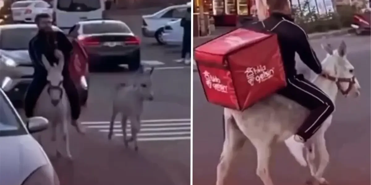 İzmirli kuryeden trafikte akılalmaz hamle, ehliyeti elden gidince eşeği kullandı