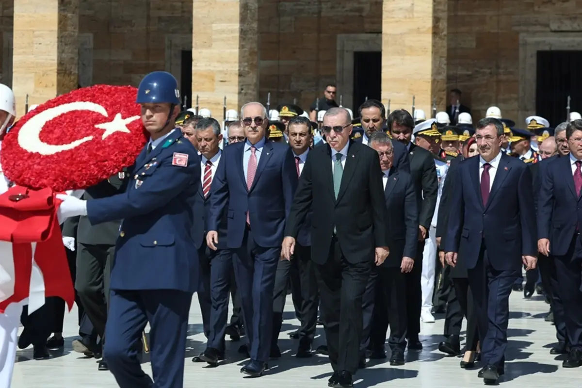 Cumhurbaşkanı Erdoğan, beraberindeki heyetle birlikte Aslanlı Yol’dan mozoleye yürüdü. Mozoleye çelenk bırakılmasının ardından saygı duruşunda bulunuldu. Törene, bakanlar, komutanlar ve devlet erkanından birçok isim katıldı. Erdoğan, tören sırasında vatandaşların desteğiyle karşılanırken, Anıtkabir’in etrafında güvenlik önlemleri de en üst seviyede tutuldu.