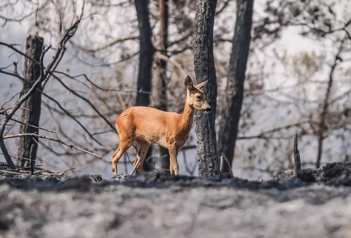 Yangının etkilediği geniş ormanlık alanın zarar gördüğü, bölgedeki ekosistemin ağır yara aldığı bildirildi. Anadolu Ajansı (AA) ekibi, karacanın alevlerden kaçış anlarını görüntüledi.