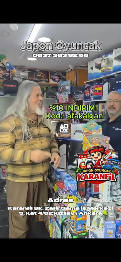 Ankara Karanfil Sokak’ta, Zafir & Gama İş Merkezi içerisinde yer alan Japon Oyuncak, 3. katta çocukların ve gençlerin yoğun ilgisiyle büyümeyi sürdürüyor. Oyuncaktan konsola, En yeni PlayStation oyunları, Oyun aksesuarları ve Her yaşa hitap eden geniş ürün yelpazesiyle alışverişi eğlenceye dönüştüren özel bir oyuncak mağazası sizleri bekliyor. Mağaza sahibi Engin Bey ile yaptığımız özel anlaşma kapsamında: Benim adımla gelen herkese %10 İNDİRİM! Şifre: afakalgan demeniz yeterli. Kısa süreli bu fırsatı kaçırmayın! Okulların tatil olmasıyla birlikte, çocuklarımız eğlensin diye başlatılan bu kampanya, aileler için büyük avantaj sunuyor. Hizmetlerimiz: Satış & teknik servis 2.el alım – satım Değişim imkânı YENİ! Kargo Uygulaması Türkiye’nin her yerine gönderim 20.000 TL ve üzeri alışverişlerde kargo ÜCRETSİZ! (Kargo bedelini Japon Oyuncak karşılıyor.) Adres: Karanfil Sokak Zafir & Gama İş Merkezi No: 4/62 – Kızılay / Ankara 📞 İletişim: +90 537 363 82 55 Tüm eğlence ve oyun severleri bekliyoruz. Keyifli ve avantajlı alışverişler dileriz