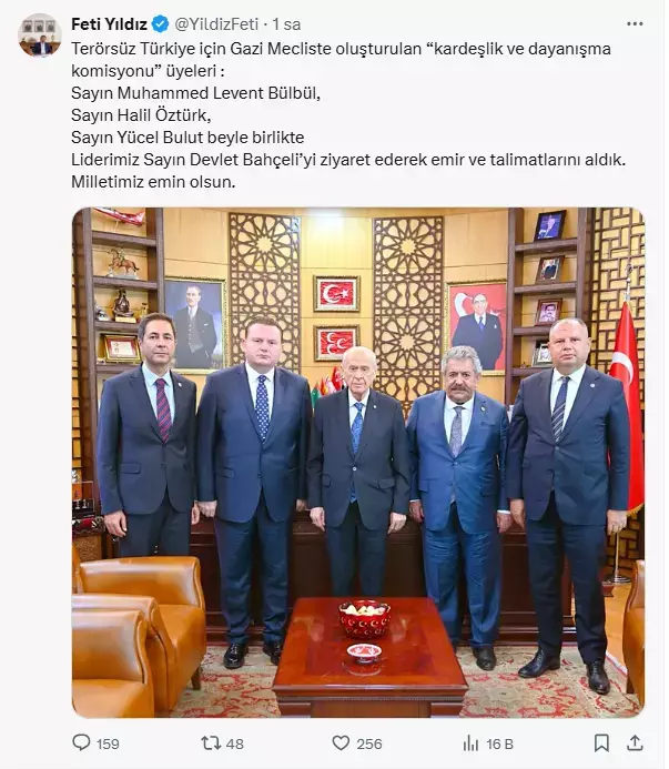 İtiraz sonrası MHP heyeti Devlet Bahçeli ile görüştü. Görüşme sonrası MHP Genel Başkan Yardımcısı Feti Yıldız, sosyal medya paylaşımında komisyon için “Kardeşlik ve Dayanışma” ifadesini kullandı.