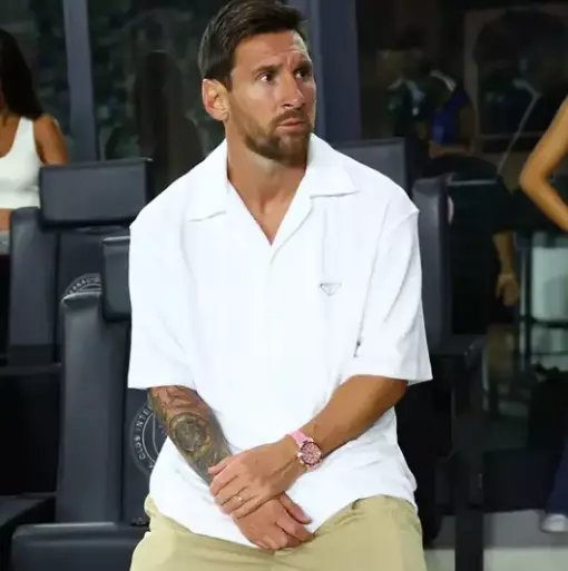 MLS’te Inter Miami formasıyla sahada olmayan Messi, FC Cincinnati maçında tribündeydi. O sırada taktığı pembe kadranlı, 18 ayar sarı altın Rolex saati dikkat çekti. Baget kesim pembe safir taşlı çerçevesi ve özel üretimiyle saatin nadirliği vurgulandı. Messi’nin kolundaki bu lüks saat, koleksiyoncular için oldukça değerli bir parça olarak kabul ediliyor.