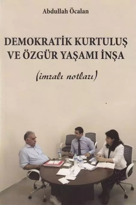 Fotoğrafta, Öcalan’ın “Demokratik Kurtuluş ve Özgür Yaşamı İnşa / İmralı Notları” adlı kitabı açıkça görülüyor. 2013-2015 yılları arasında İmralı’da yapılan görüşmelere dayanan bu kitap, yayınlandığı 2015 yılından kısa bir süre sonra, 2016 yılında mahkeme kararıyla toplatılmıştı.