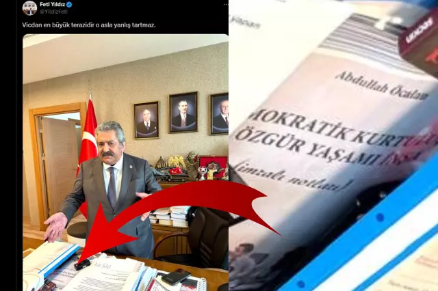 MHP Genel Başkan Yardımcısı Feti Yıldız’ın sosyal medya hesabından yaptığı bir paylaşım, siyasetin gündemini bir anda sarstı. Yıldız’ın makam odasından paylaştığı fotoğrafta, masasında bulunan bir kitap gözlerden kaçmadı. Detayları dikkatlice inceleyenler, masada terör örgütü PKK’nın elebaşı Abdullah Öcalan’a ait, hakkında toplatma kararı bulunan bir kitabın yer aldığını fark etti.