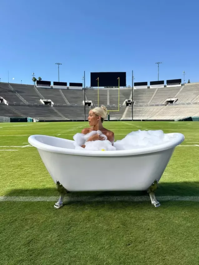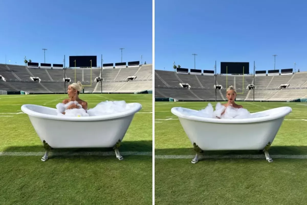 Eski jimnastikçi ve sosyal medya fenomeni Olivia Dunne, viral bir reklam kampanyası için sıra dışı bir paylaşıma imza attı. Fanatics bahis şirketiyle iş birliği yapan 22 yaşındaki Dunne, Rose Bowl Amerikan futbolu sahasının ortasına yerleştirilen küvette tamamen çıplak bir poz verdi. Mahremiyetini köpüklerle gizleyen Dunne, sosyal medyada büyük ilgi topladı.
