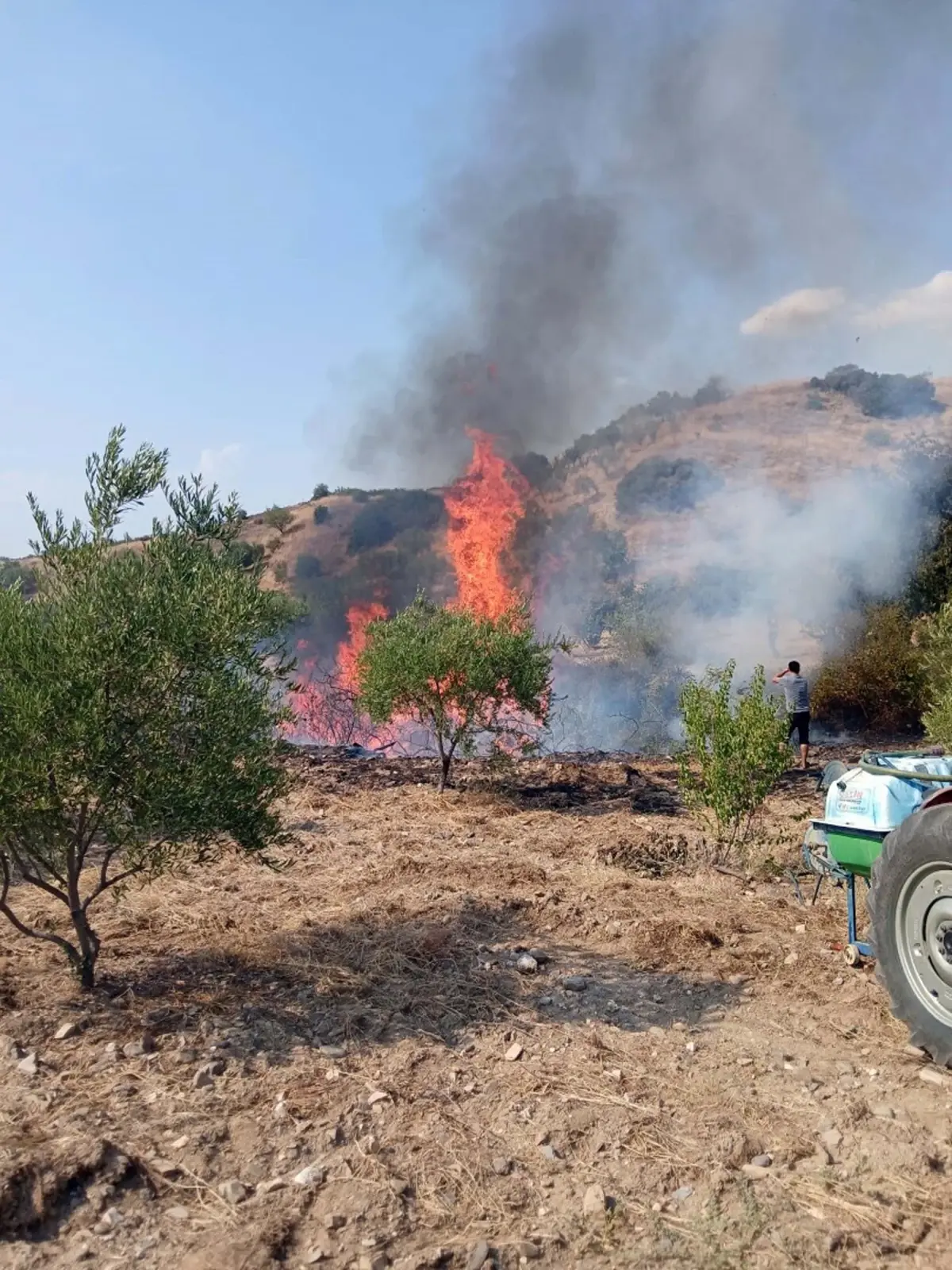Ancak asıl kahramanlar, traktörlerinin arkasına taktıkları su tanklarıyla yangına müdahale eden köylüler oldu. Kadını, erkeği, genciyle seferber olan mahalleli, adeta alevlere meydan okudu! Ortak çabayla yangın büyümeden kontrol altına alınırken, 5 dönümlük zeytin bahçesi ve makilik alan ne yazık ki alevlerden nasibini aldı.