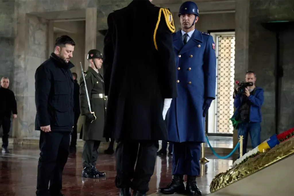 Ukrayna Devlet Başkanı Volodimir Zelenskiy, Türkiye ziyaretinin en dikkat çekici hamlelerinden birini gerçekleştirdi: Anıtkabir’i ziyaret etti. Ziyaret sırasında Aslanlı Yol’u yürüyen Zelenskiy, Türk halkına saygı duruşunda bulunarak duygusal anlar yaşadı.